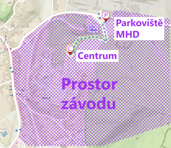 | Centrum závodu: | Plácek nad Mokrou-Horákov poprvé mimo Brno POZOR: Centrum je uprostřed závodního prostoru a jediný povolený přístup je ze severu od parkoviště a zastávky MHD po oranžových fáborkách (ukázat na mapě). Je to 340 m, ale dost do kopce (převýšení 26 m). Jak se dostat na parkoviště najdete zde. |